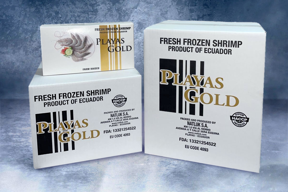 This is Our Playas gold brand for farm raised shrimp our main brand that represents the origin and identity of our product. Produced with premium selected shrimp and hands of local women.